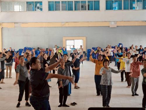 พช.เสลภูมิ นำทีมสตรีอำเภอเสลภูมิ เตรียมความพร้อมการรำสมโภชเมืองร้อยเอ็ด 250 ปี
