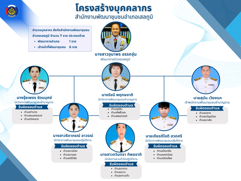 | นักวิชาการพัฒนาชุมชนชำนาญการ เจ้าพนักงานพัฒนาชุมชนชำนาญการ นักวิชาการพัฒนาชุมชนปฏิบัติการ |